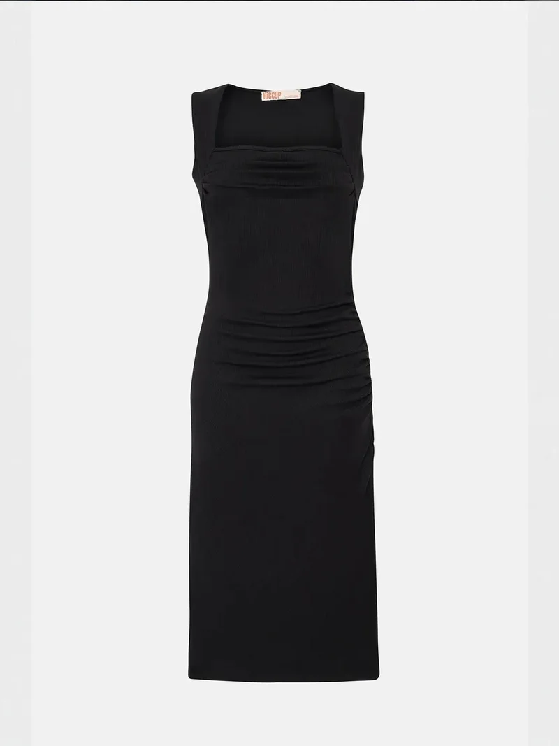 Solid Sleeveless Notch Neck A-Line Midi Dress
