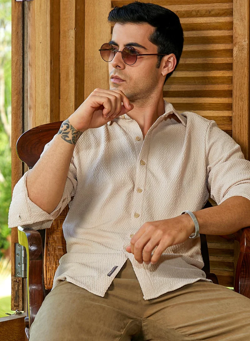 Men's Black Textured Button Up Spread Collar Shirt For Casual Wear | Regular Fit | Poly Lycra Shirt Crafted With Short Sleeve, Comfort Fit & High-Performance For Everyday Wear