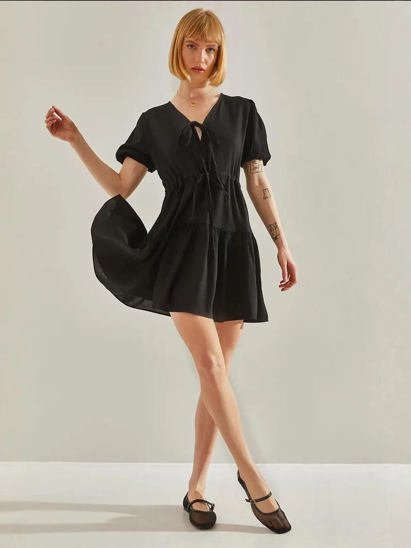 Sleeveless Halter-Neck Mini Dress with Side Slit