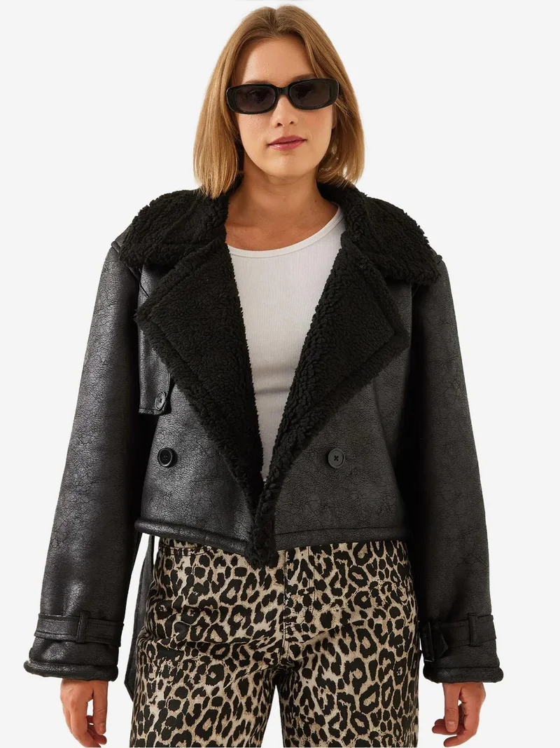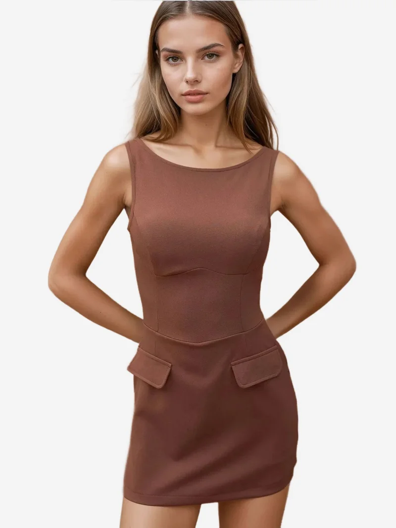 LUCCI High Waist Crepe Mini Skirt with Slit