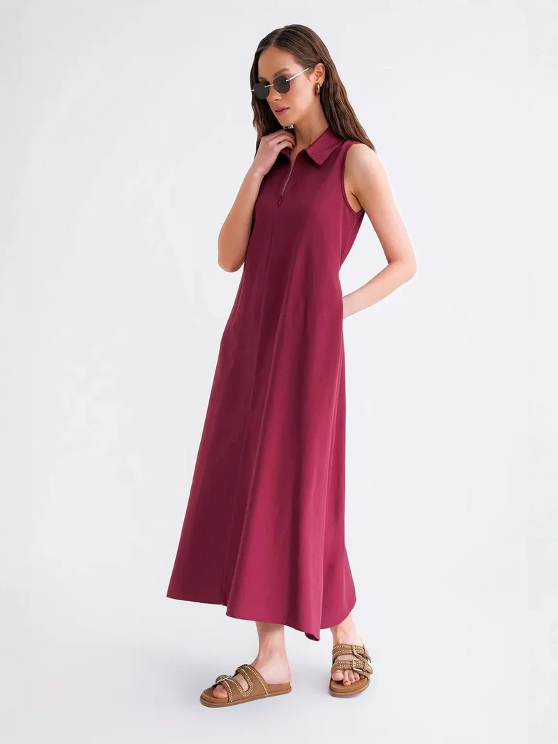 Mixray Midi Dress with Belt Detail and Buttoned Collar