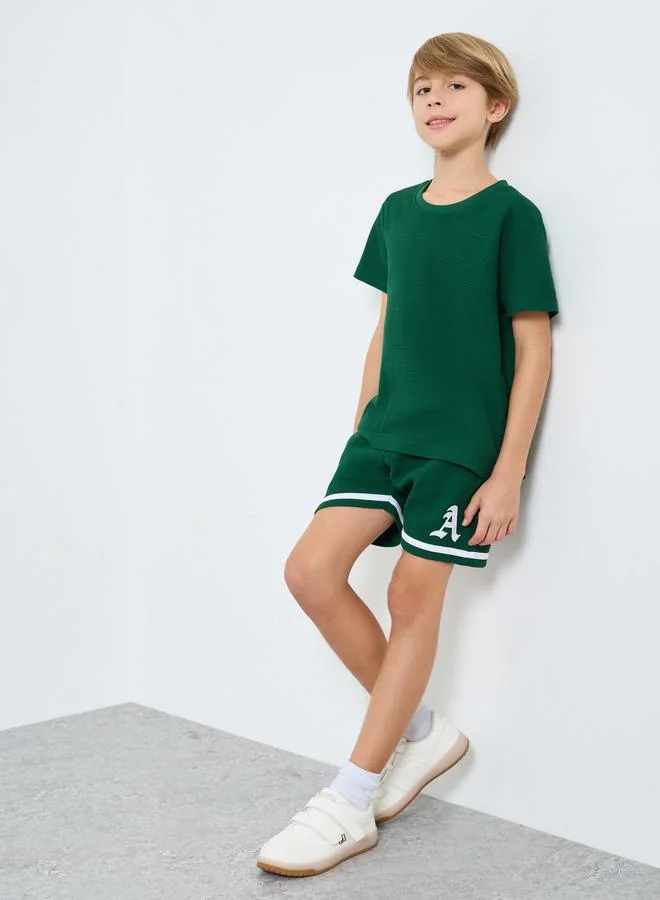 Embroidered Crew Neck T-shirt with Short Sleeves