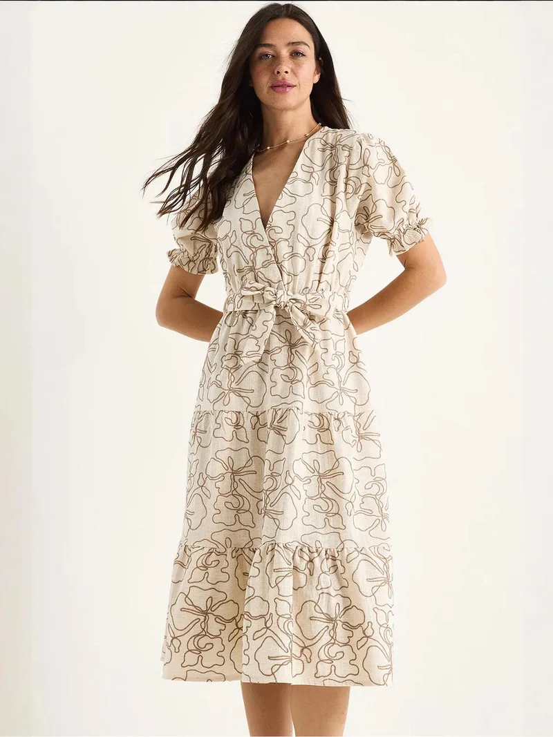 Take Two Women Abstract Printed V Neck Belted A-Line Maxi Dress