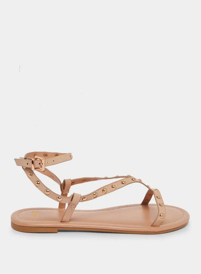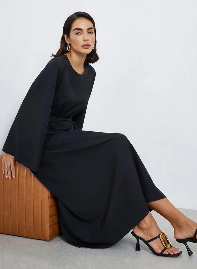 Styli Embroidered Beaded Detail A-Line Maxi Dress