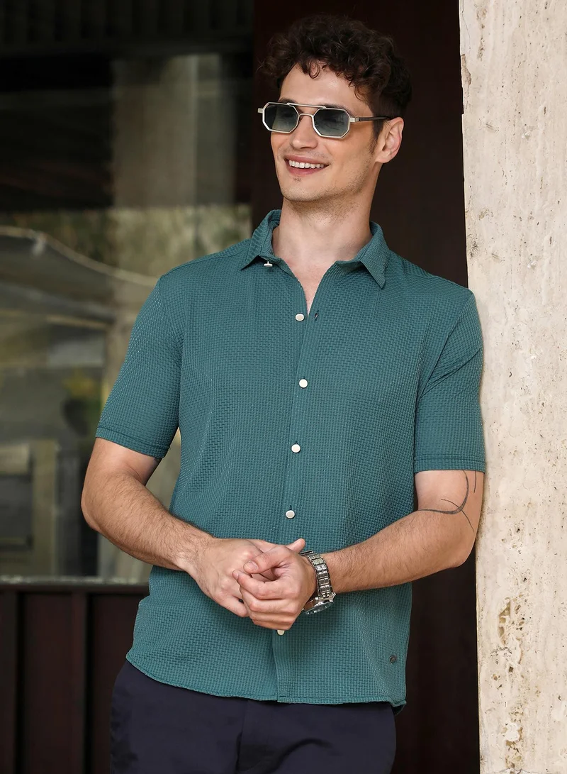 BDART Textured Midi Dress with Shirt Collar and Pockets