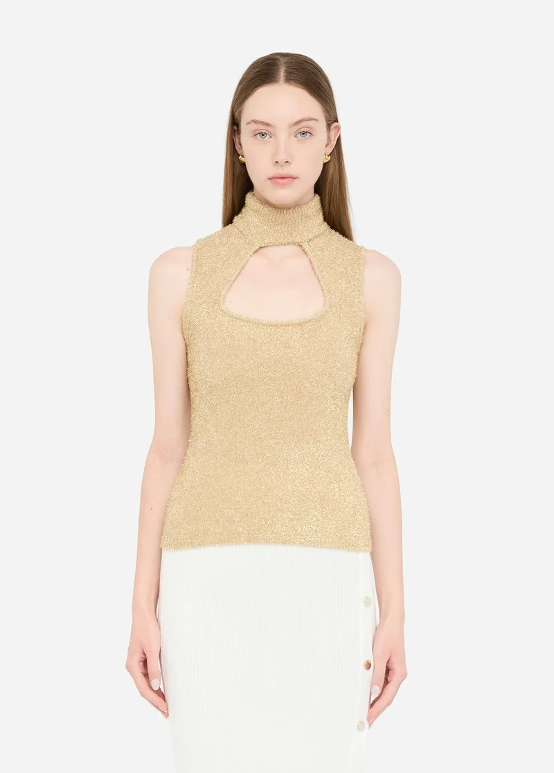 Cutwork Detail Pointed Toe Ballerina Shoes with Slingback Buckle Closure
