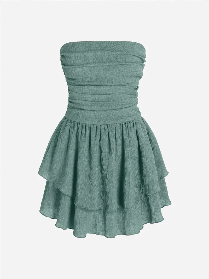 Solid Puff Sleeves A-Line Maxi Dress with Gathers