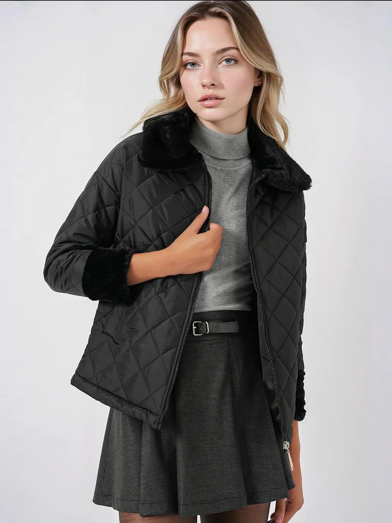 Faux Fur Collar Ankle Boots in Black