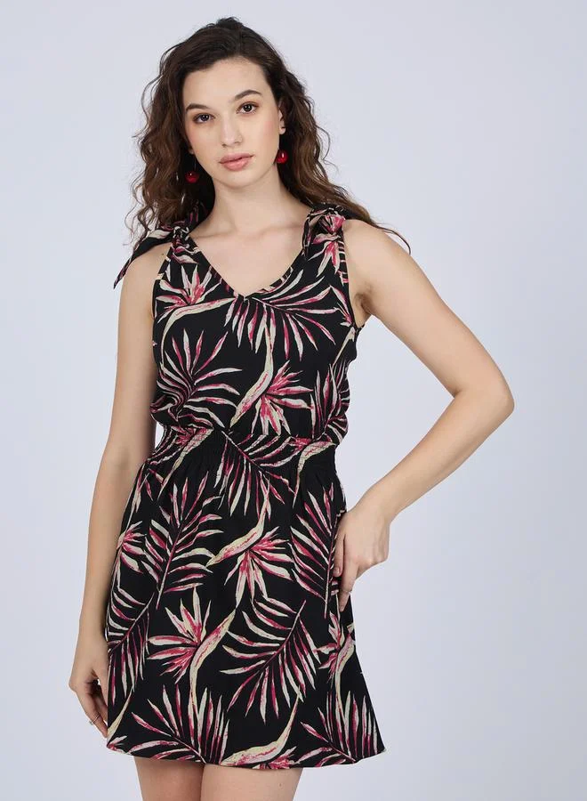 Black Puff Sleeve Smocked Cotton Fit & Flare Dress for Women