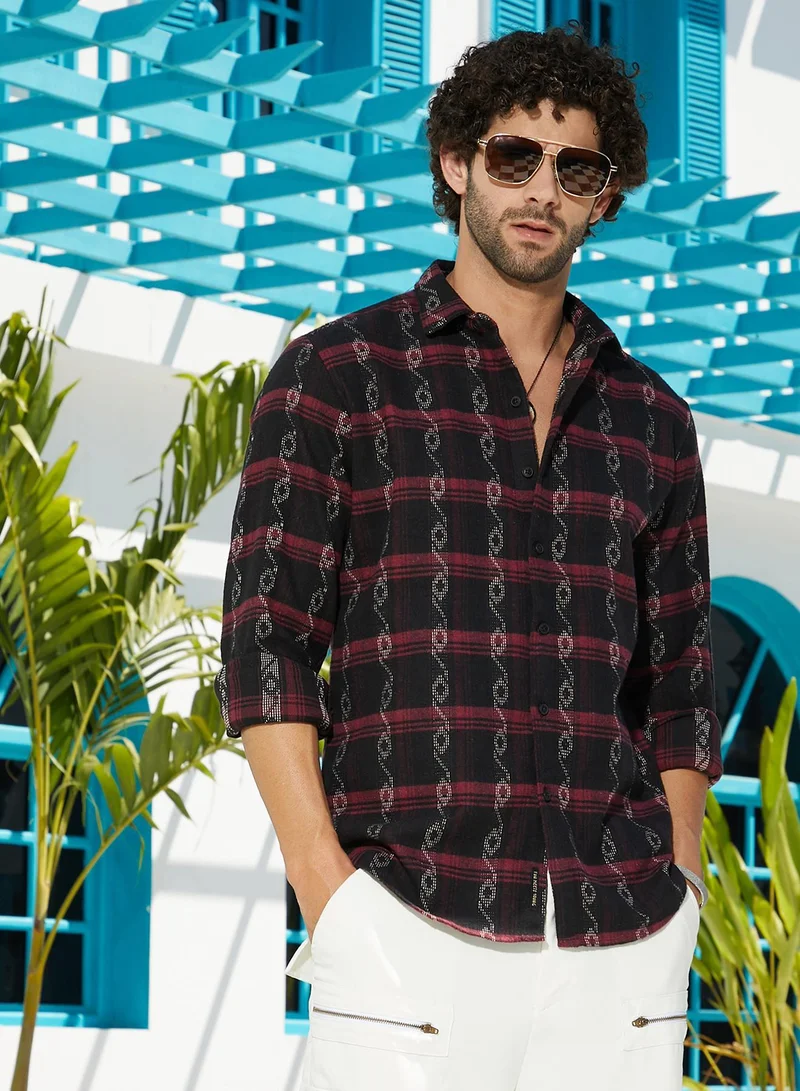 BDART Textured Belted Midi Dress with Shirt Collar