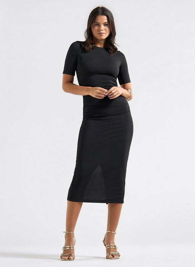 Styli Ditsy Print Tie-Up Neck Knee Length Dress
