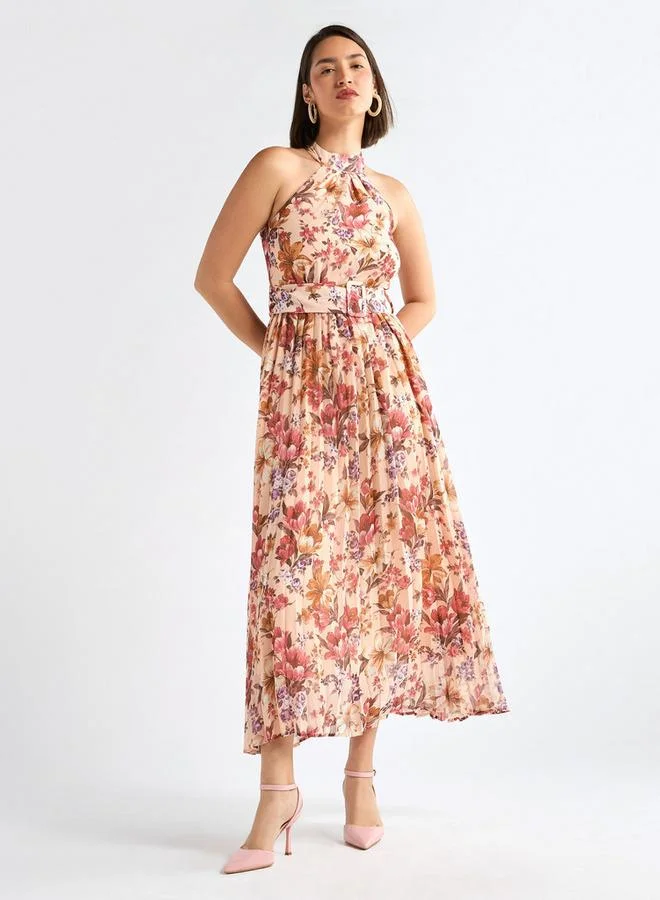 Styli Pleated Waist V Neck Bodycon Midi Dress