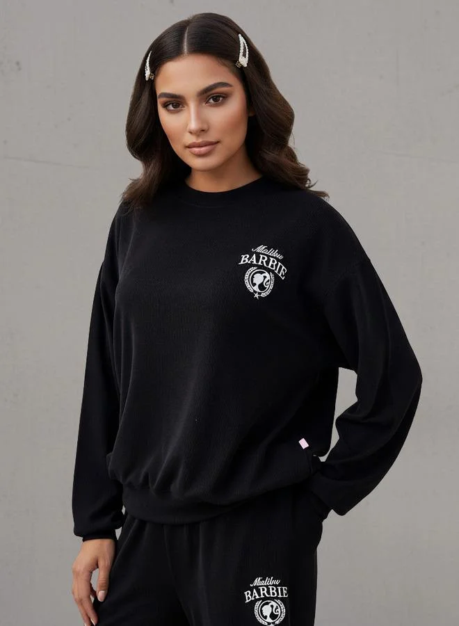 Oversized Sweatshirt with Barbie Embroidery Detail