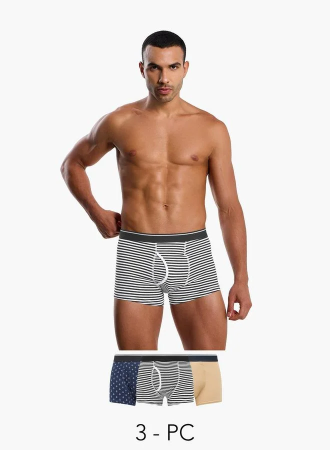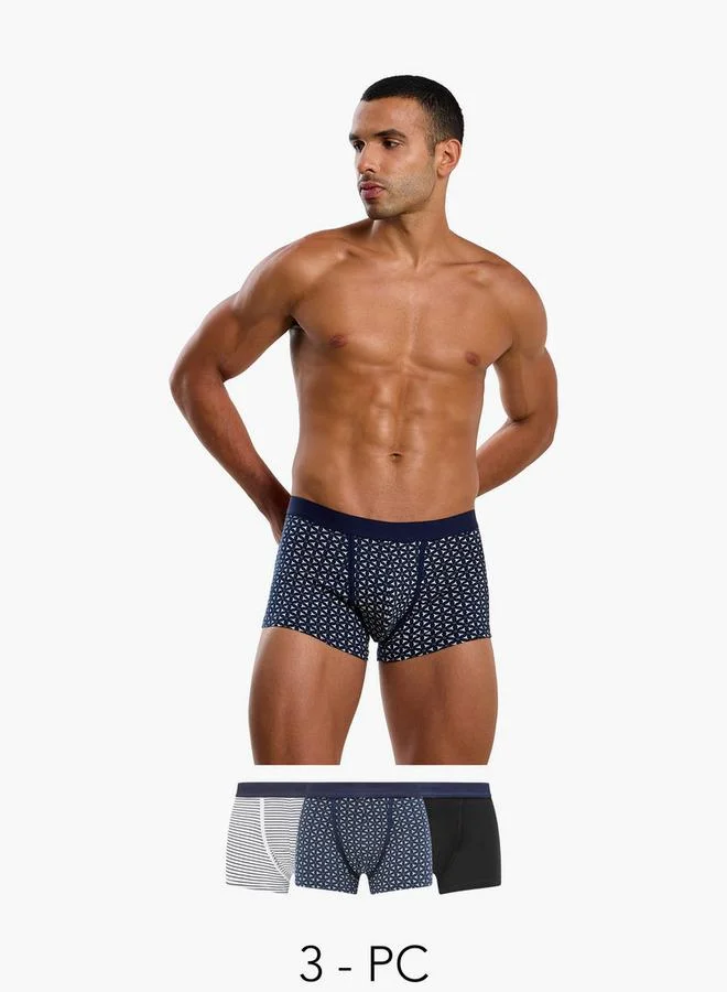 Men Printed Waistband Cotton Trunks - Pack of 3
