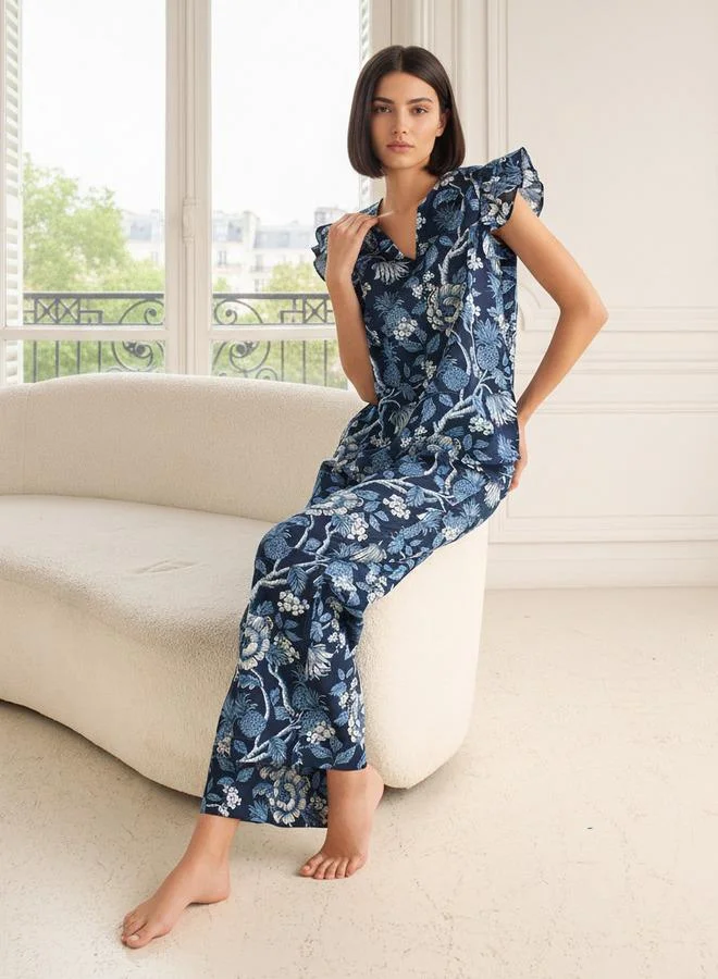 Maxi Maternity Night Dress Short Sleeves with Polka Dot Print