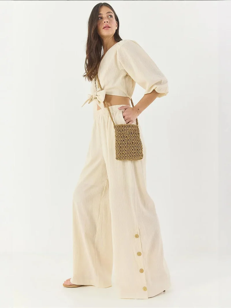LUCCI Textured Blouse & Skirt Muslin Fabric Two-Piece Set