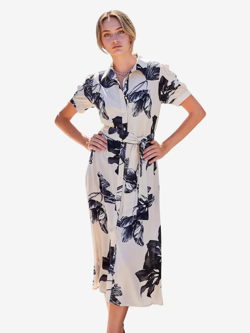 Women Green Floral Printed Cotton Jalabiya with Flared Sleeves & Round Neckline-AL4045
