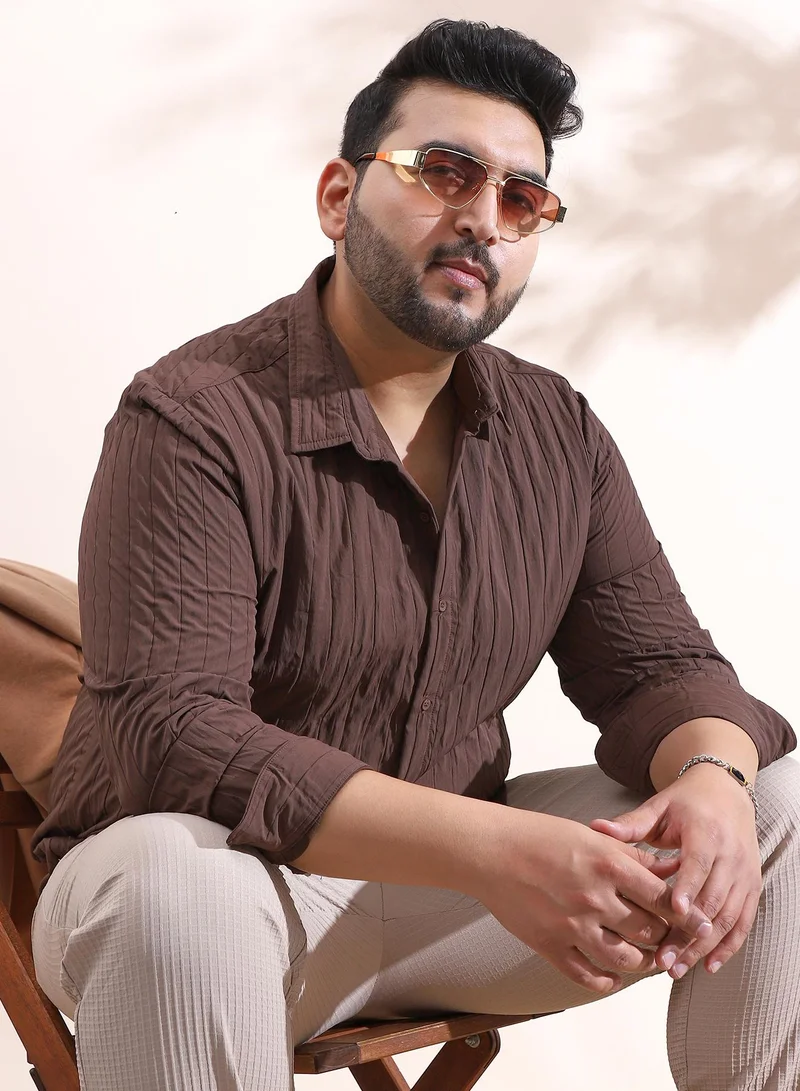 Men's Peach Textured Regular Fit Casual Shirt
