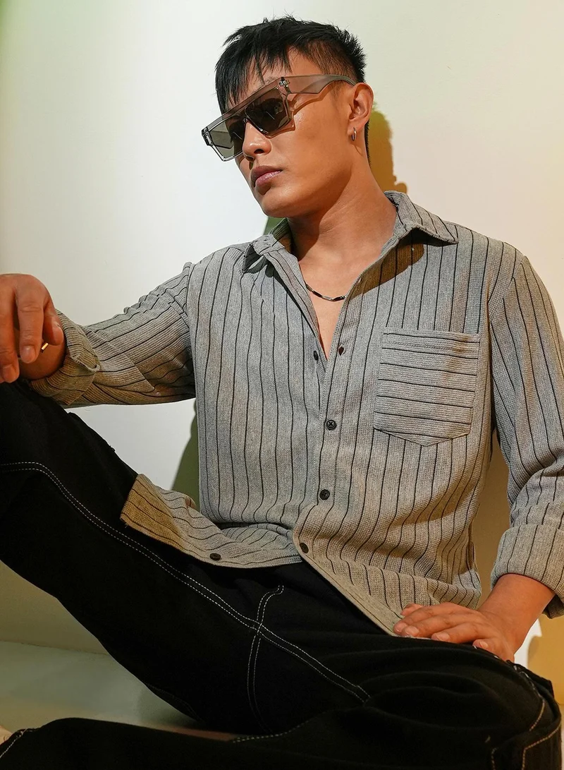 Linen Blend Stripes Regular Fit Trousers