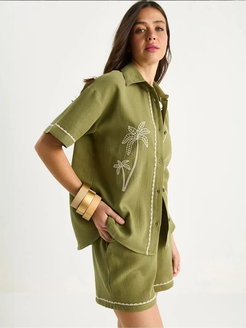 Lee Cooper All-Over Schiffli Embroidered Cotton Shirt with Long Sleeves