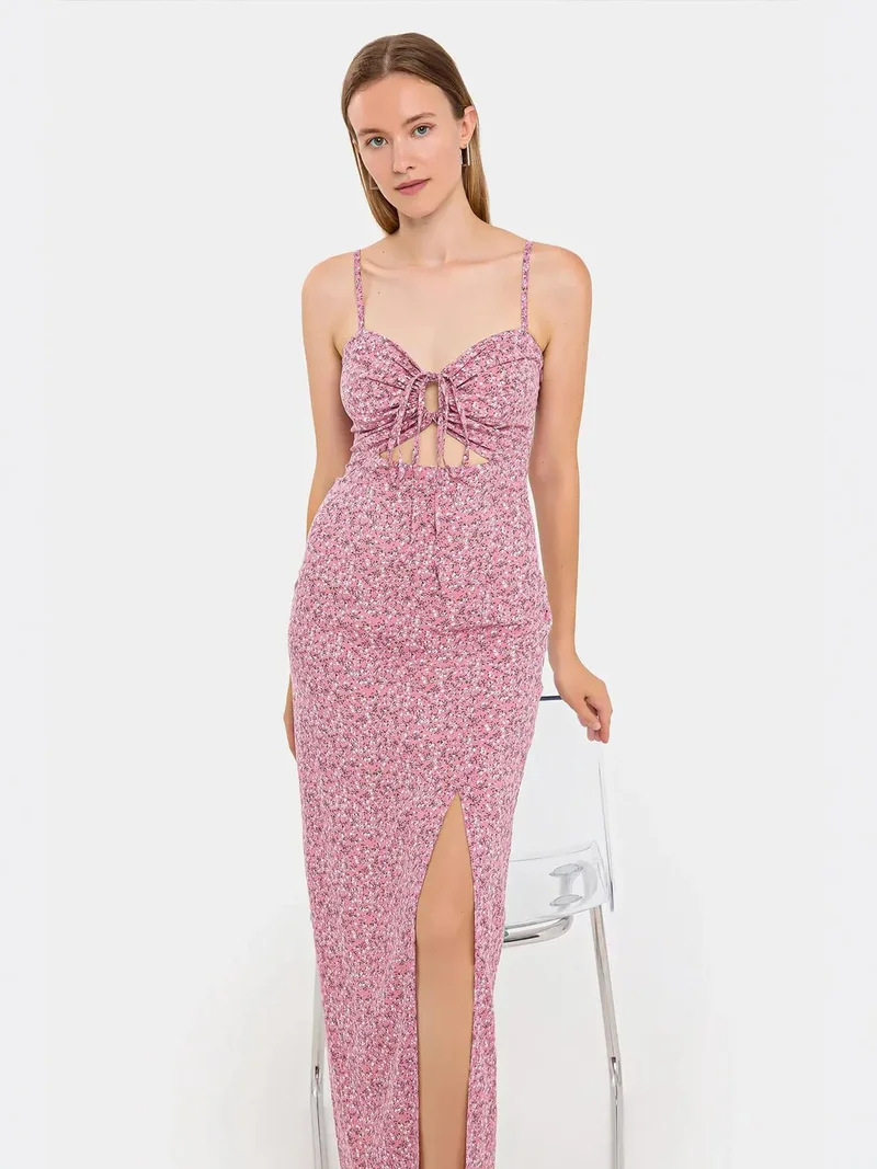 Maxi dress with rhinestone halter collar