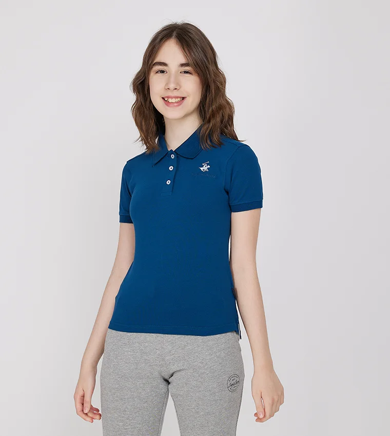 Short-sleeved polo-neck sweater
