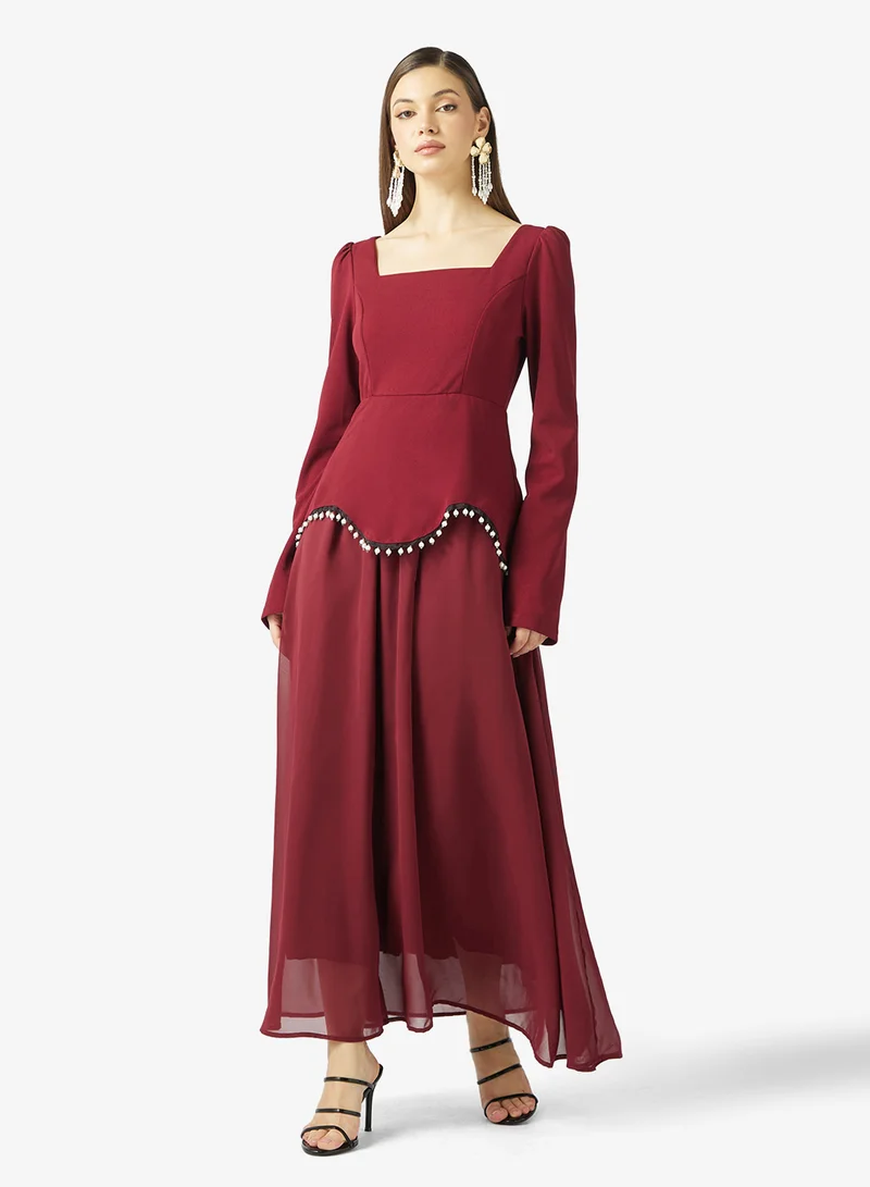 AE Long-Sleeve Tiered Embroidered Midi Dress