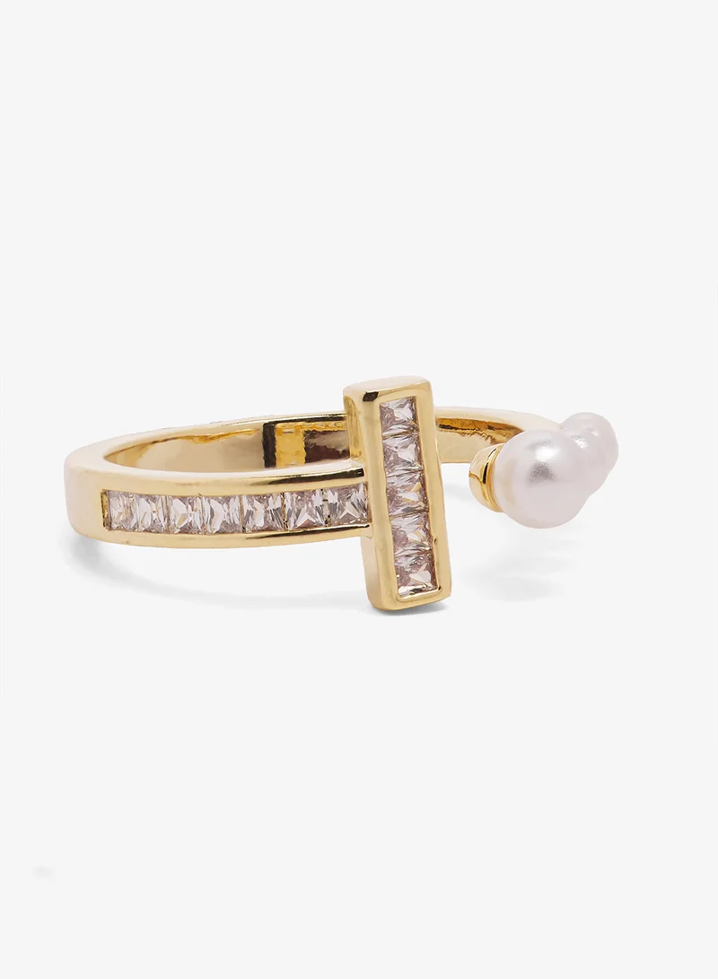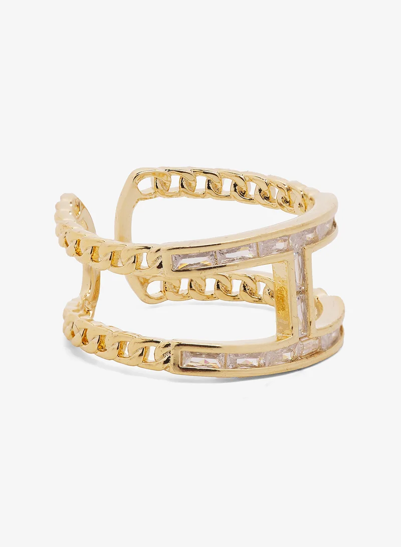 Diamonte Rhinestone Embellished Gold Ring