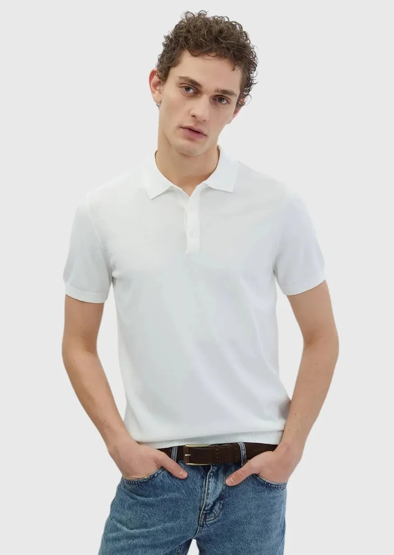 White Jacquard Polo Neck 100% Cotton T-Shirt