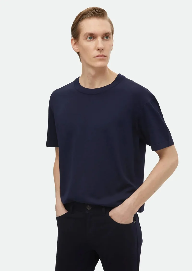 Navy Blue Plain Crew Neck 100% Cotton T-Shirt