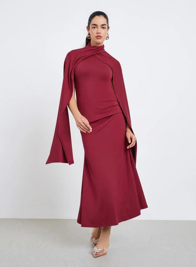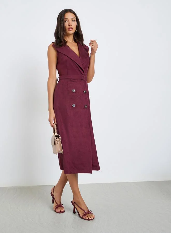 Burgundy Color Block Sleeveless A-Line Maxi Dress