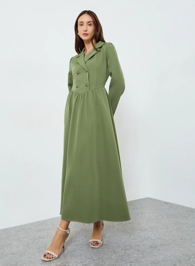 Women's Allover Printed Lapel Design 3/4 Sleeve Maxi Dress