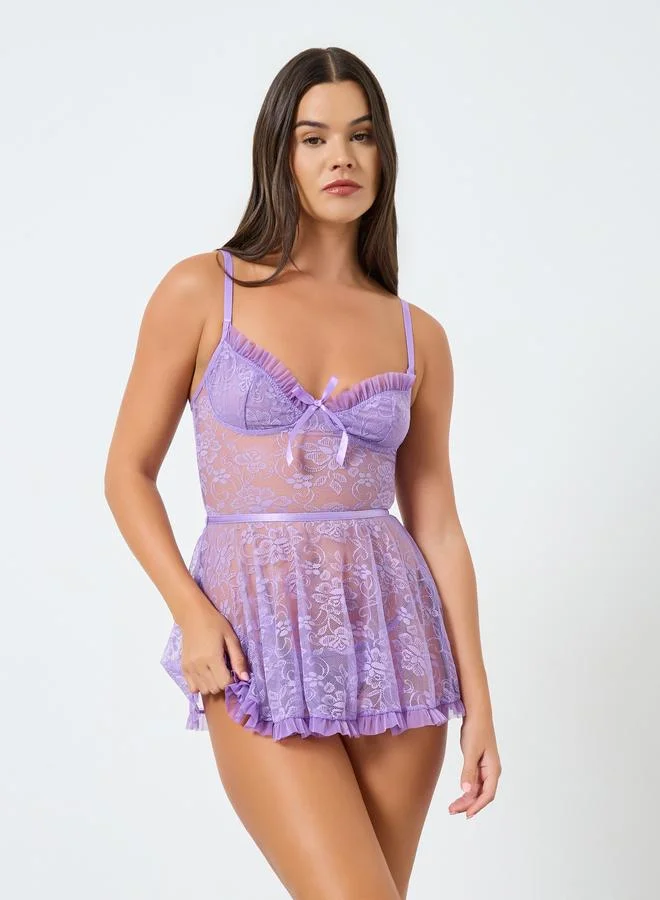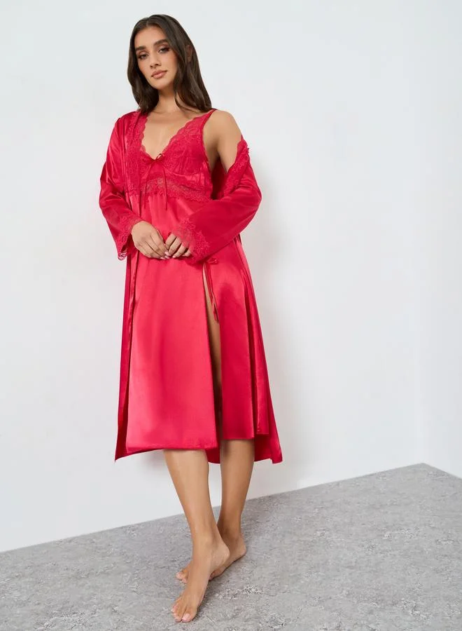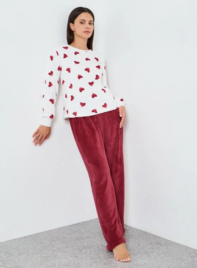 Lace Trim T-Shirt and Printed Pyjama Set