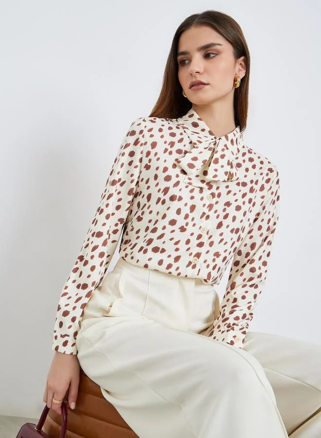 Women Graphic Printed Tie-Up Neck Top