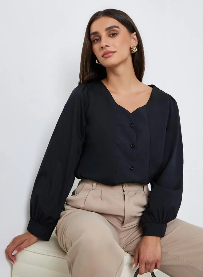Women Solid Button Front Long Sleeve Jacket