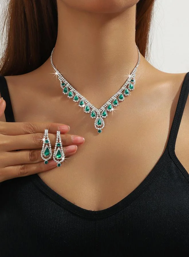 Emerald Green Crystal Necklace and Earrings Set