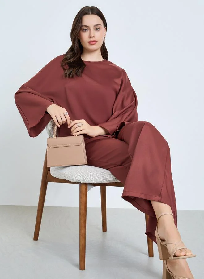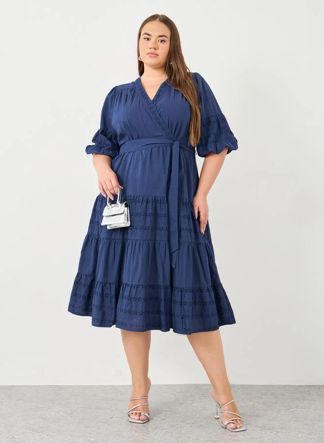 Solid Sleeve Embellished Party Midi Dress