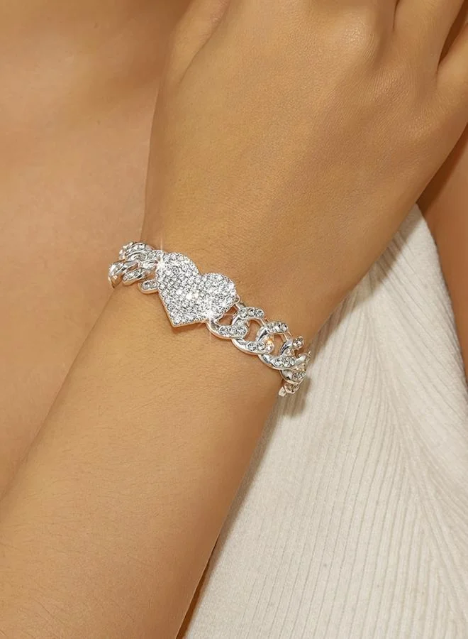 Silver Crystal Necklace with Earrings and Bracelet and Ring Set