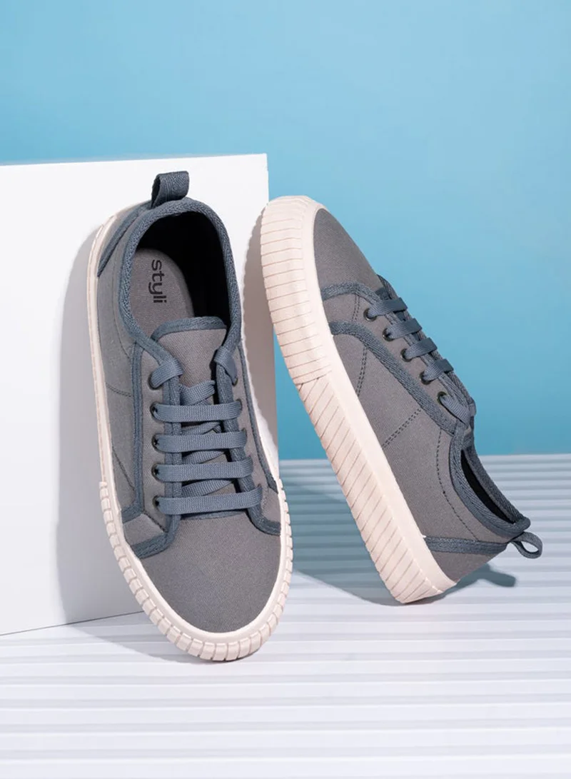 Contrast Stitch Casual Canvas Lace Up Sneakers