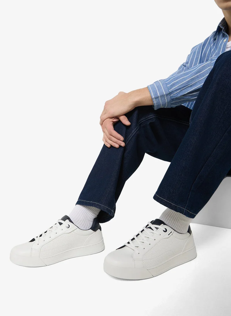 Men's White Low-Top Canvas Sneakers - Iconic Branding for a Clean Look Shoes