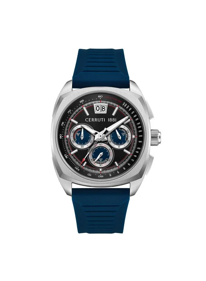 Cuneo 41.3mm Black Blue Dial Silicone Strap Chronograph Watch For Men