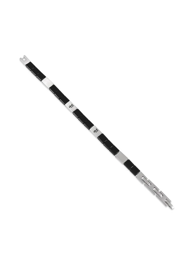 Barbed Gunmetal Stainless Steel Bracelet With Wooden Beads 180mm for Men