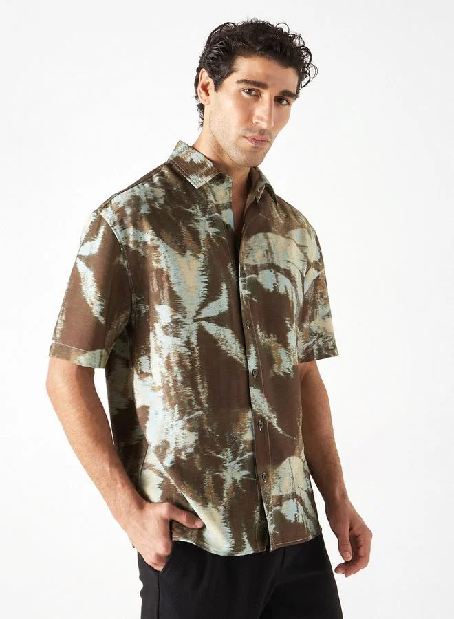 Iconic Regular Fit Printed Shirt with Collar and Short Sleeves