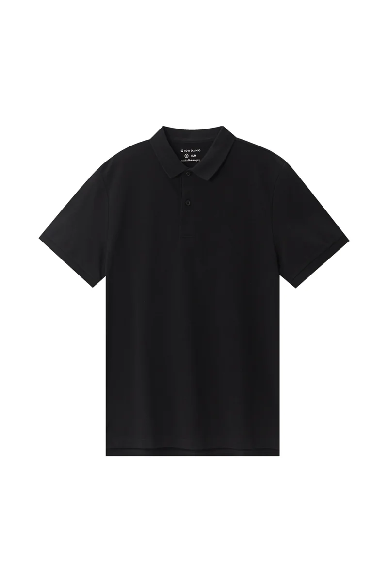 Men's Black Slim Fit Pique Polo