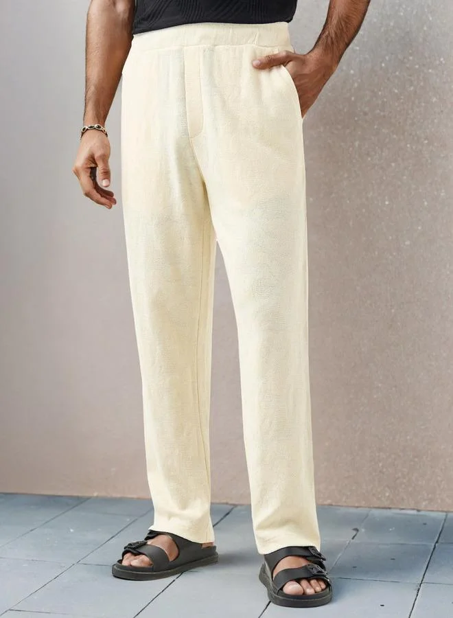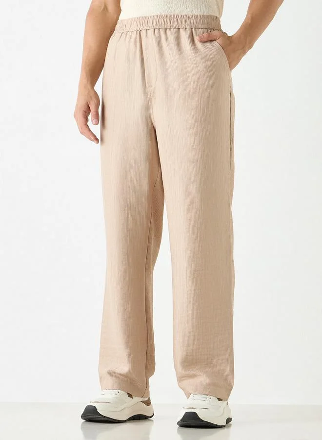 Iconic Regular Fit Textured Pants with Elasticated Waistband and Pockets