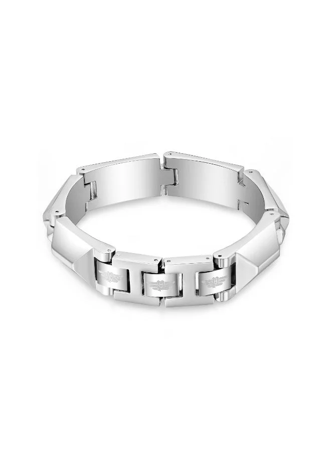Geometric Silver Faceted Link Bracelet Large Men