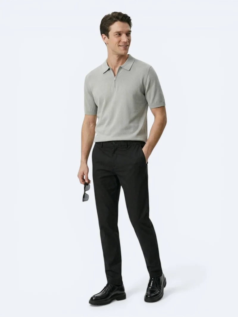 Hazelnut Weaving Slim Fit Casual Cotton Blended Trousers