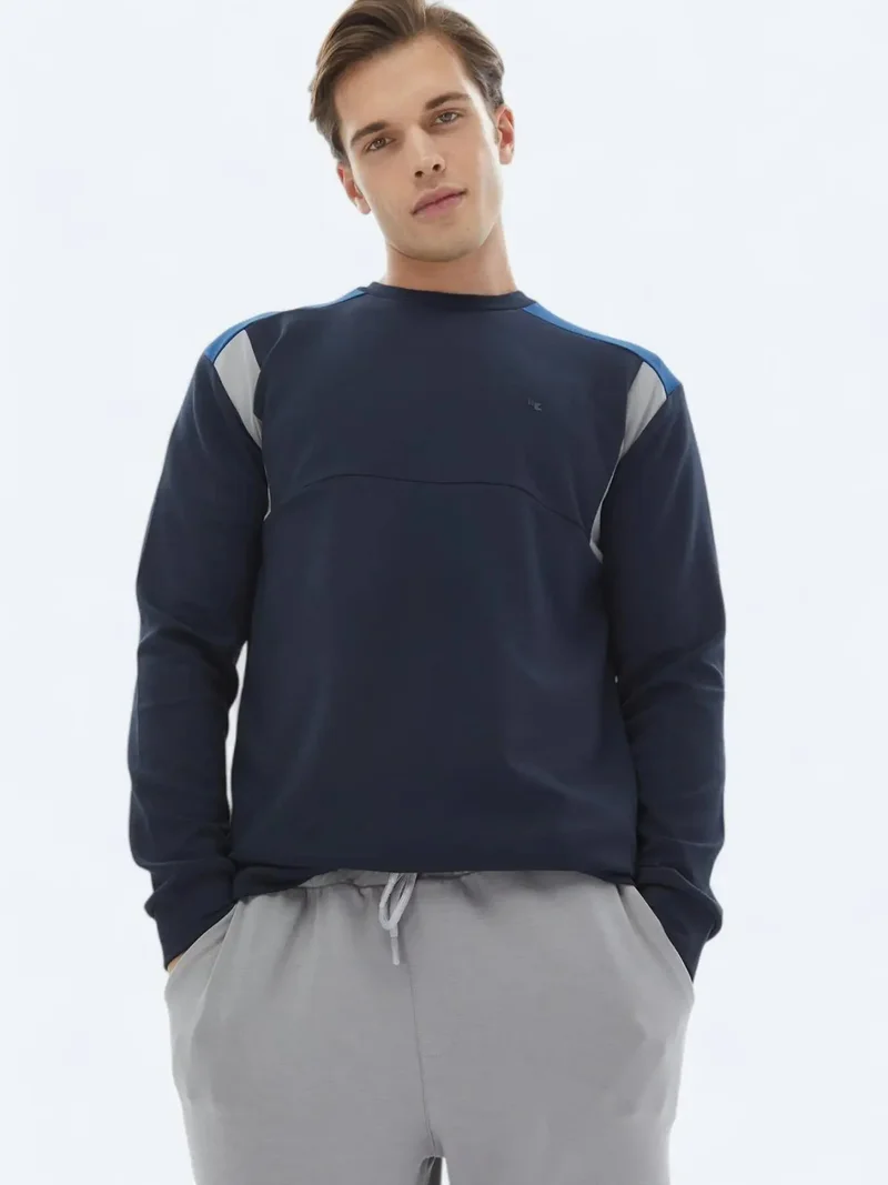 Navy Blue Weaving Slim Fit Casual Cotton Blended Trousers
