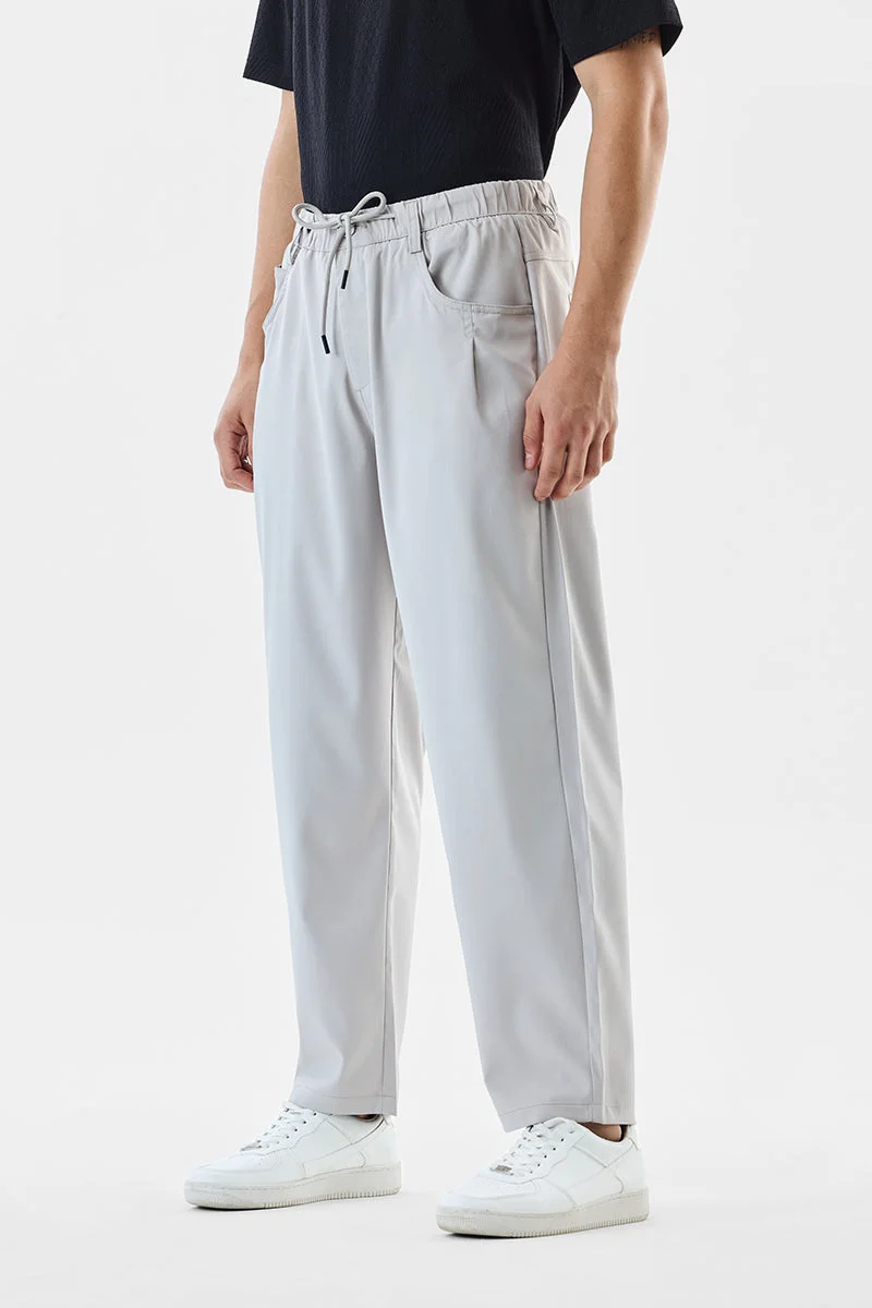 Light Grey Weaving Slim Fit Casual Cotton Blended Trousers