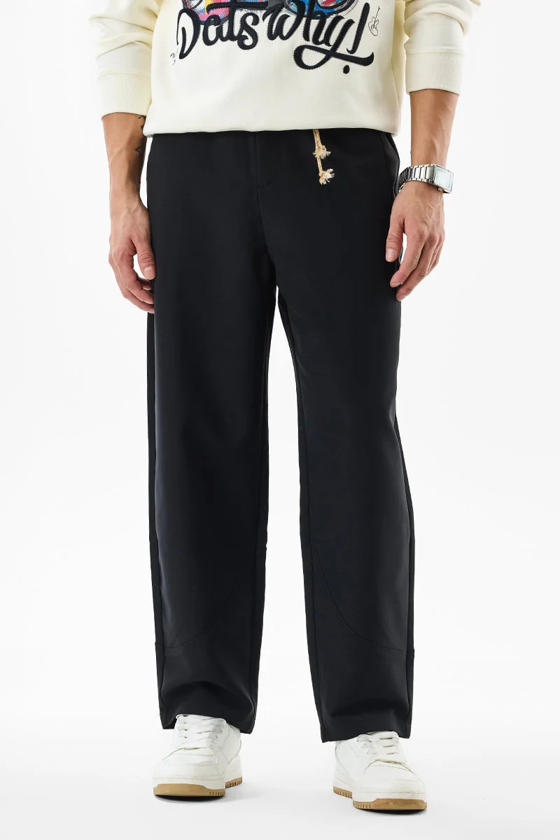 Men's Black Cotton Blend Solid Pattern Full Length Cargo Relaxed Trouser
